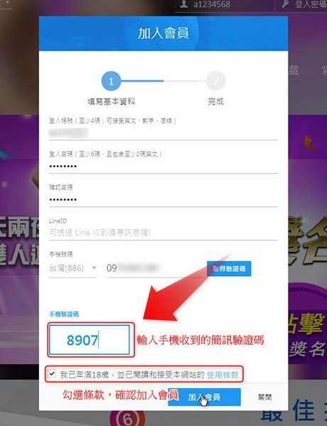 4.再勾選左下方的條款後點擊加入會員就完成註冊了