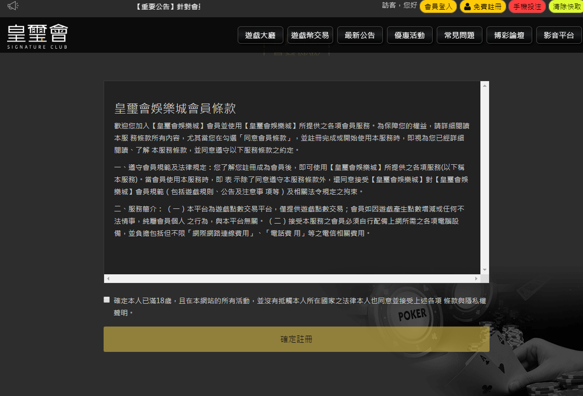 1.先進入贏家娛樂城首頁,點選右上方的快速註冊