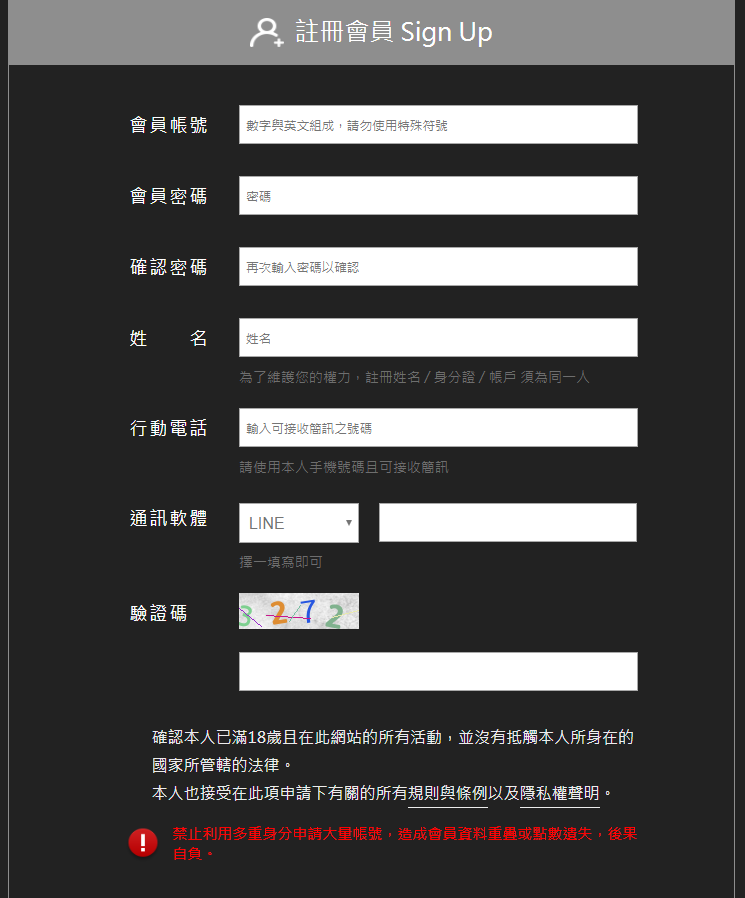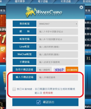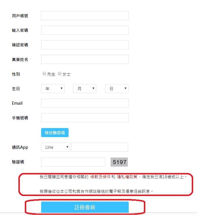 4.輸入驗證碼後勾選下方條款送出即可完成註冊