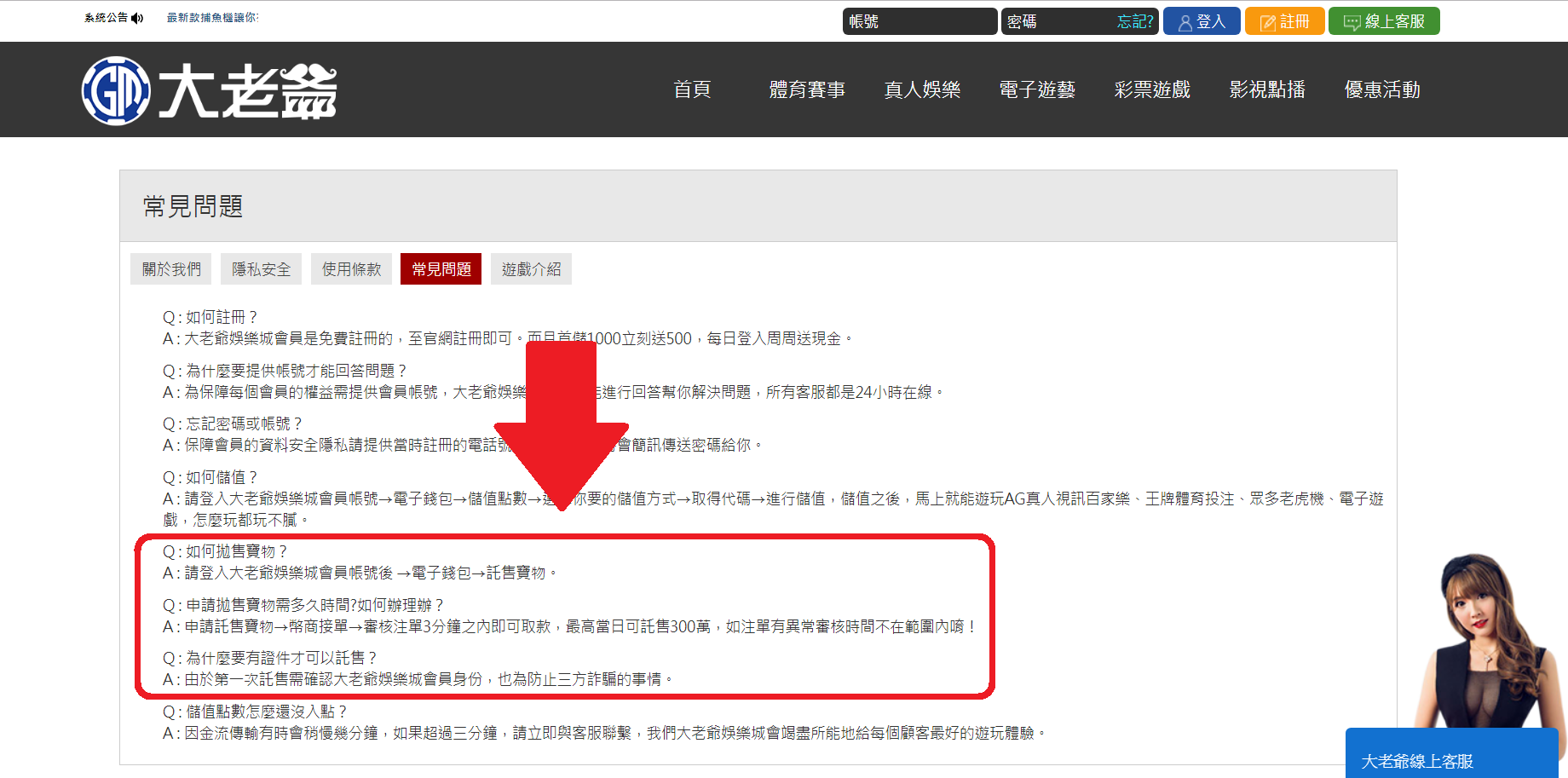 貼心度的部分TU娛樂城、大老爺娛樂城都是比較高的,對於新會員來說有常見問題欄是十分受用的,相較之下,炫海娛樂城就沒有這一塊,所以若是還沒成為會員的話,就會不知道該如何操作。