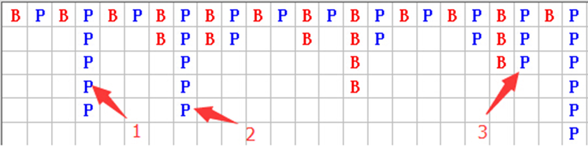 3.箭頭3所指列就符合出手條件,反打一口莊,中馬上換靴。