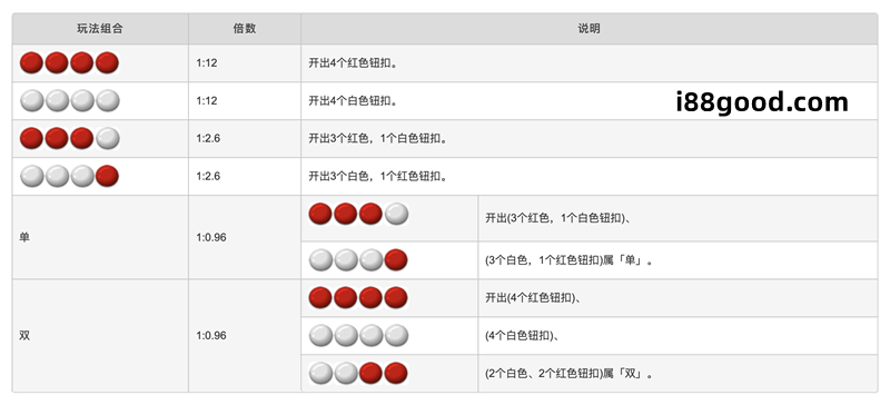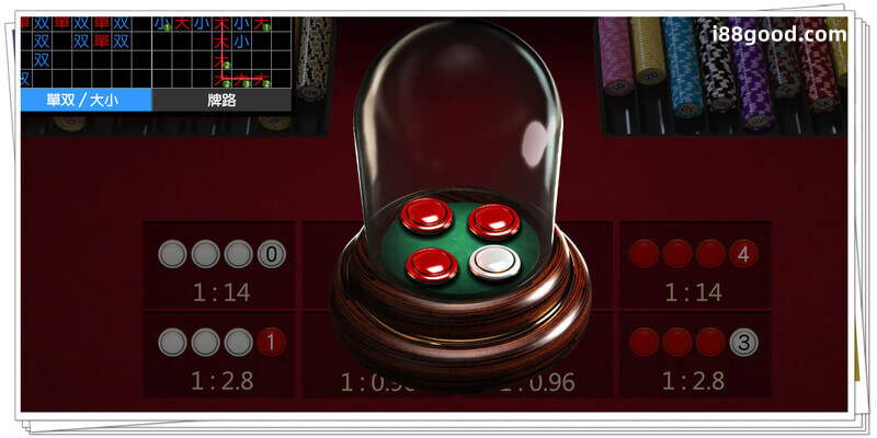 - 對壓:色碟是一款一翻兩瞪眼的遊戲,非紅即白,所以一般來說並不能單雙一起押,但是可以換個角度想,3白1紅以及3紅1白都是單,那是不是可以下雙、3白1紅以及3紅1白各50。這是色碟一種分散風險的方式。