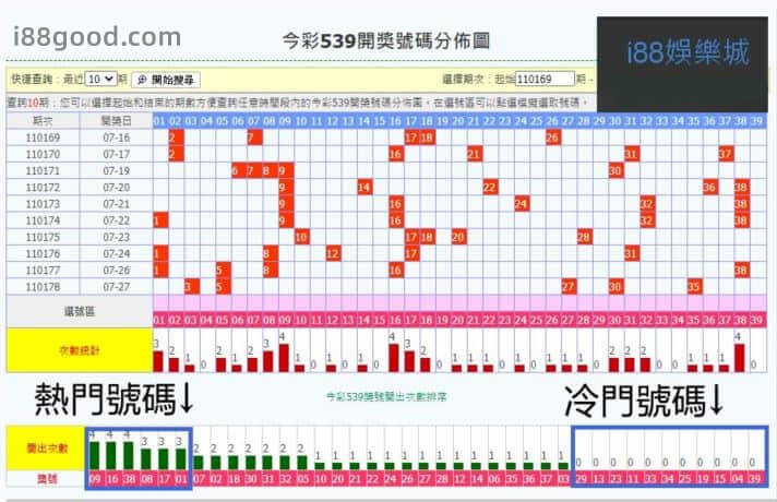 再來是落球大小統計法、連號統計法與冷熱門號碼分析法,落球大小統計法就是把開獎號相加/195(39*5),若小於平均值0.5則下期有機率開小,反之則開大。連號統計法是跟拖牌法一樣把戰線拉長,觀察每一期中最常一起出現的號碼,冷熱門號碼分析法則是觀察每期最常開出與最不常開出的號碼分為冷門與熱門。除此之外還有很多分析的方法,在i88娛樂城都有專業團隊免費報牌,就不一一贅述了,找到最適合自己的方法最重要!