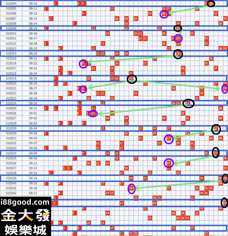 - 冷熱門號碼 : 將近幾期開出的號碼整理起來,找出最常出現的號碼(熱門號)與最不常出現的號碼(冷門號),之後再將兩者結合起來投注,會比39隨便選2中獎機率還要高很多喔 !