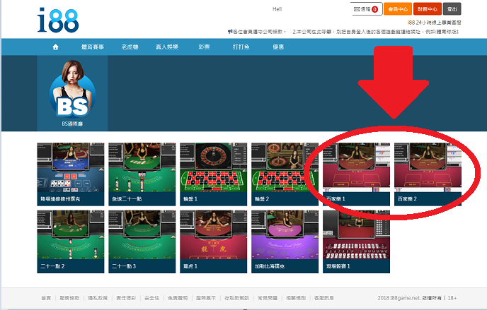 點選想要的百家真人廳(此篇以BS為例)