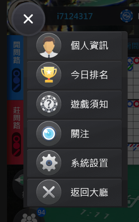 最後,如果你想要返回大廳或是詳看遊戲須知等等,點選位於左上角大頭貼照(圖片裡是三條槓槓),