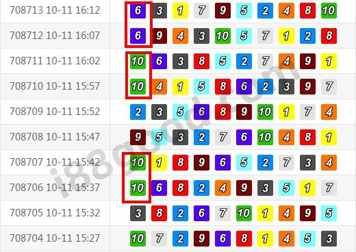 - 冠軍規律 : 舉例來說,本期的前三個號碼是4、5、8,取其中最大與第二大的數字相加後看尾號,也就是說5+8=13取3,下期開出的號碼很有可能有3。用這個方法有時候可以命中系統設定的規律 !