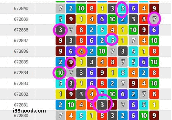 - 拆組命中 : 假設本期的前三個號碼是4、5、6,同樣取最大與第二大的數字相加會得到11,把該數字拆開分別做相加與相減,會得到1+1=2與1-1=0,下期就有可能開出2與10,依此類推。同樣也是去打系統設定的規律。