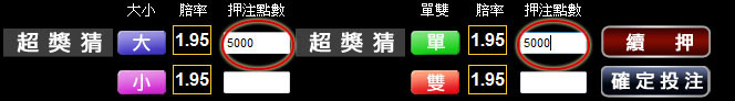 2.您可以一次投注多種玩法,輸入押注點數後,最後再按『確認投注』即可!